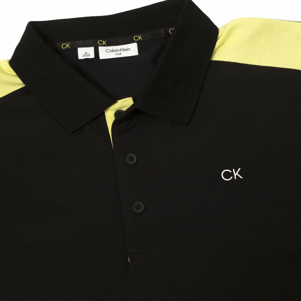 The garment has a modern fit for a slim line look, with a 3-button placket. It is complete with CK branding embroidered on the chest and printed on the left sleeve. There is also a CK golf woven tab to lower left side and CK branded stretch back neck taping.