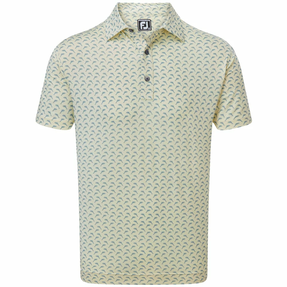 The FootJoy Dolphins Print Lisle Polo Shirt is made from moisture-wicking fabric which moves the moisture away from the garment, keeping you fresh in warm conditions or during the unexpected spells.