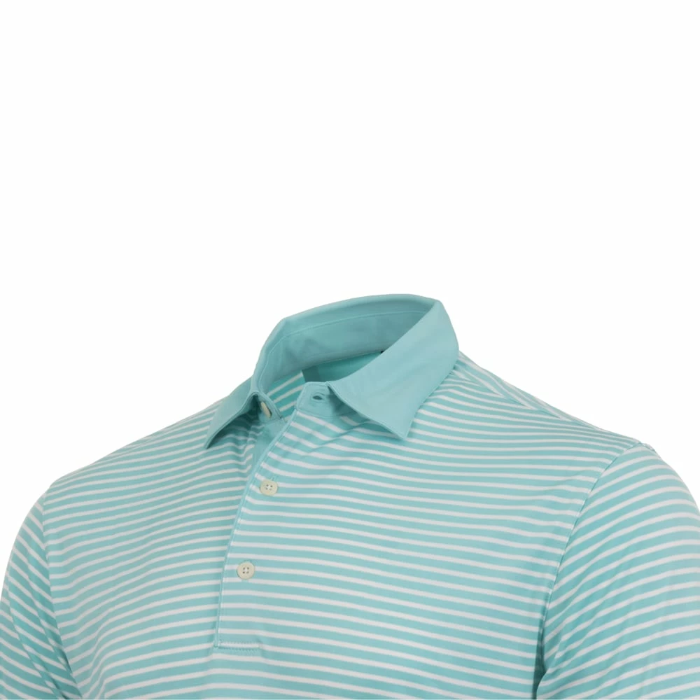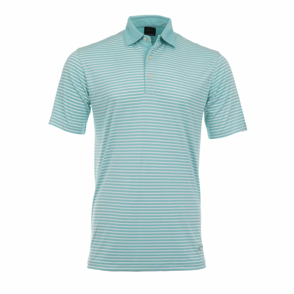 The Greg Norman Bar Stripe Performance Stretch Polo Shirt uses stetch fabric for excellent freedom of movement during play. It also comes with PLAY DRY moisture wicking technology that helps keep you feeling dry and fresh while you play by removing moisture from the skin to the top of the fabric for quick evaporation. The polo is finished with a contrasting collar and an embroidered shark logo on the bottom left hem for added style on and off the golf course.