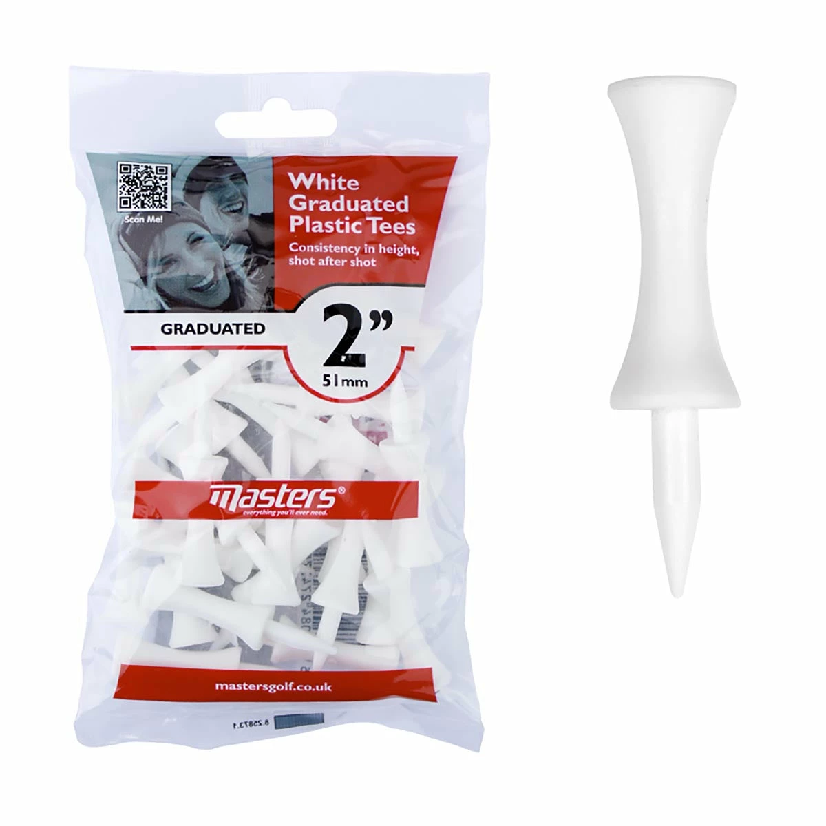 Masters Plastic Graduated 2 Inch White Tees – Pack Of 25