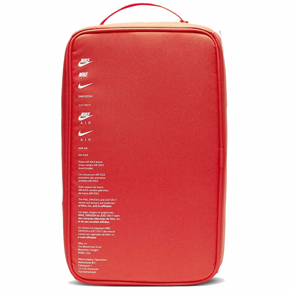 Keep your sneaks pristine as you transport them in style with the Nike Shoebox Bag. It features a classic shoebox silhouette with a full-zip closure for easy access and an eyelet for ventilation. This product is made from at least 50% recycled polyester.