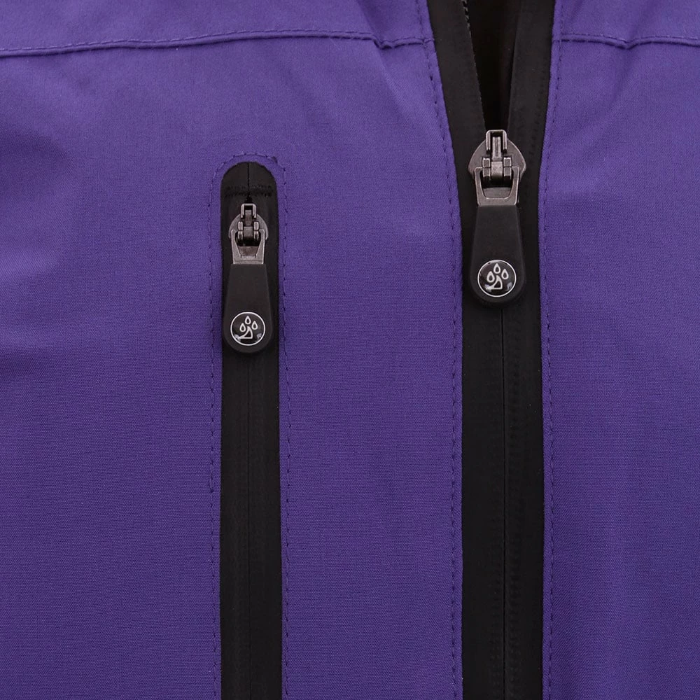- Waterproof front and pocket zips with snap down close pullers