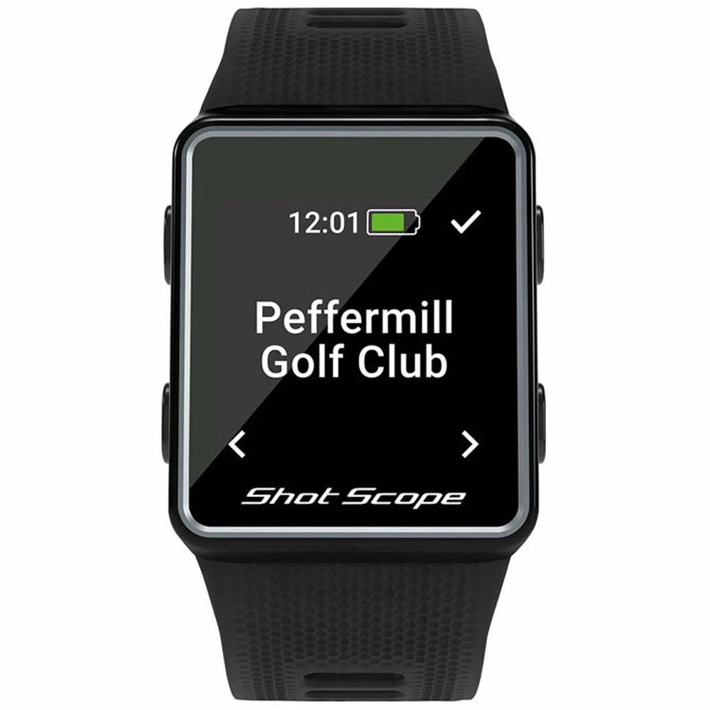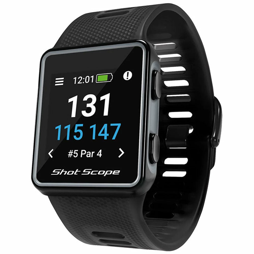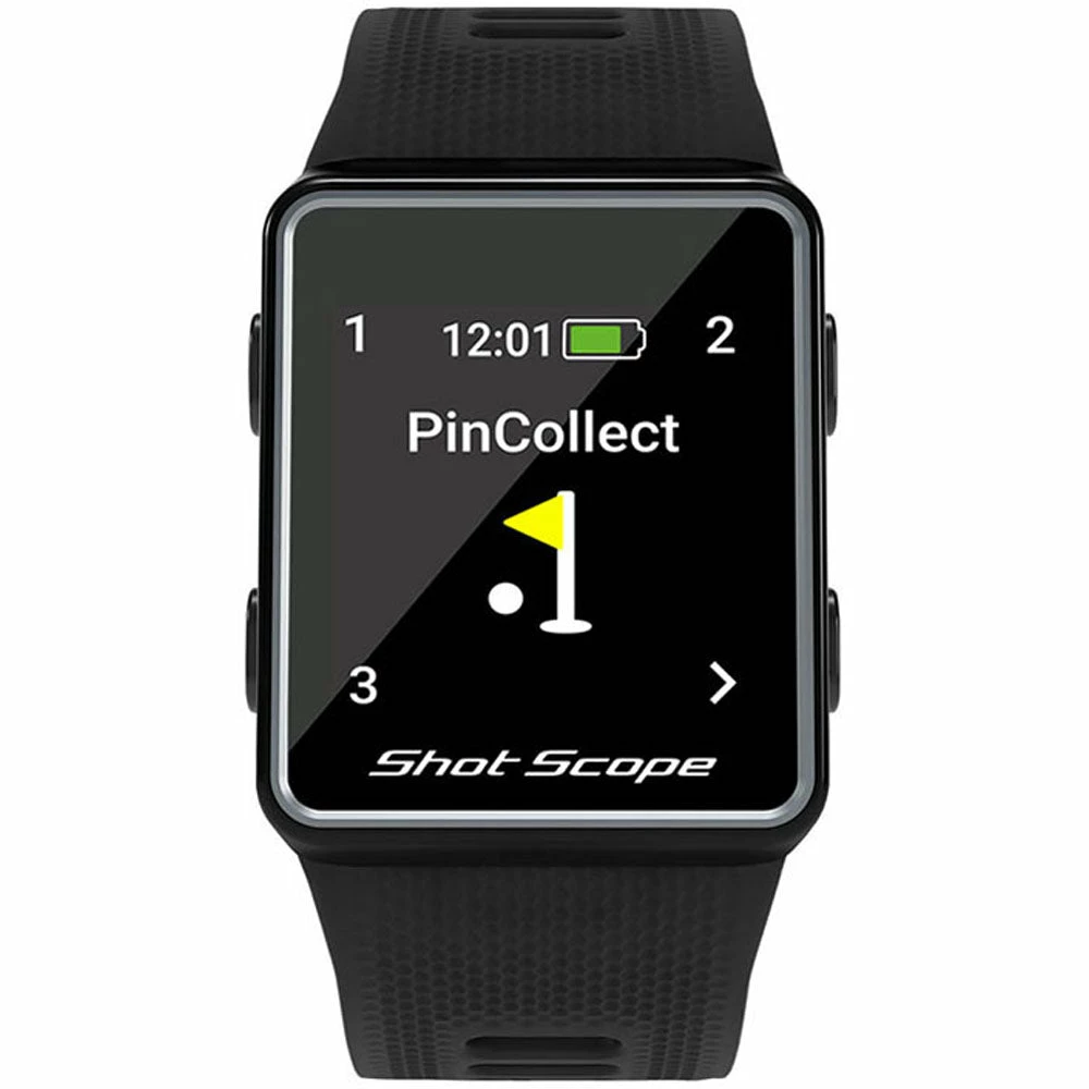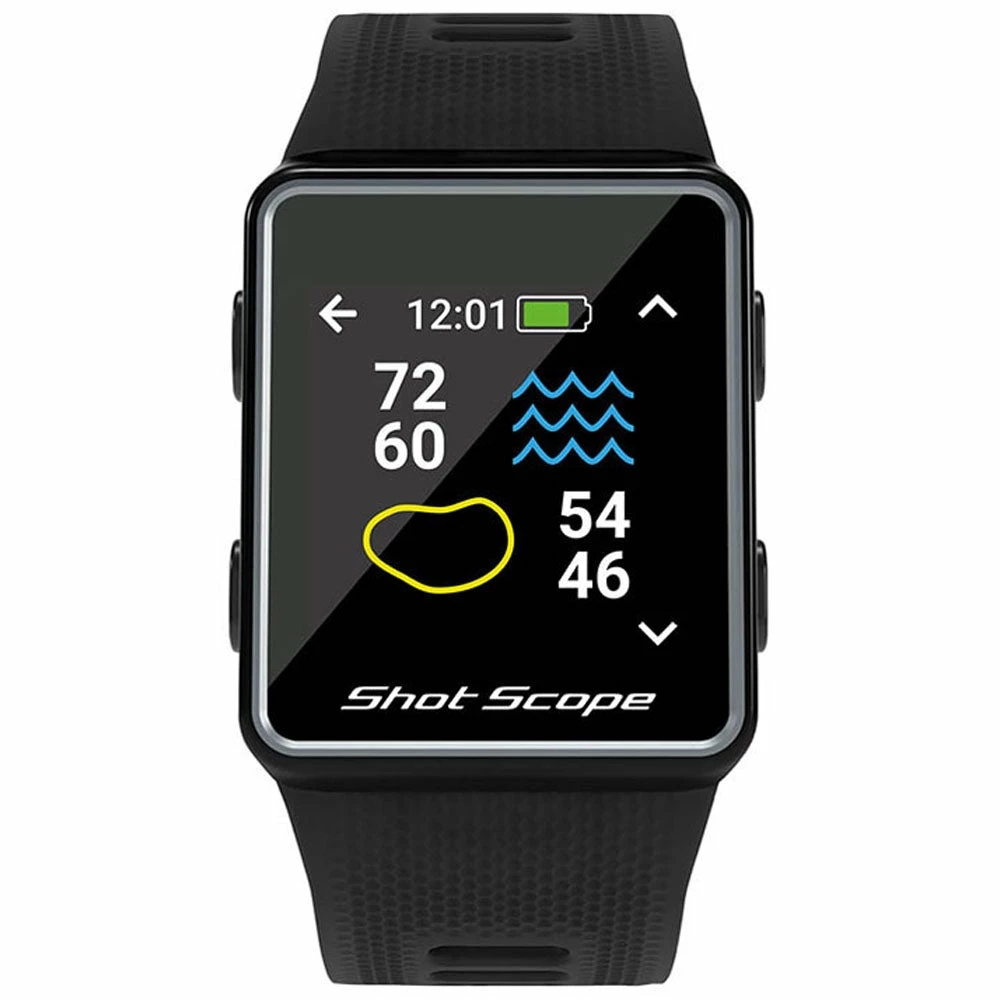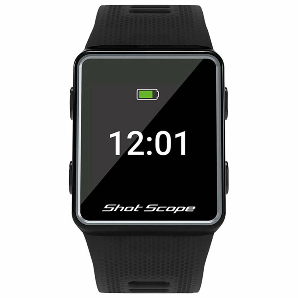 Shot Scope V3 is an advanced GPS watch with automatic shot tracking and statistics platform. F/M/B GPS distances and hazards are clearly visible on the daylight readable colour screen, while the Power-Sense strap and tracking tags ensure every shot is recorded automatically while you play.