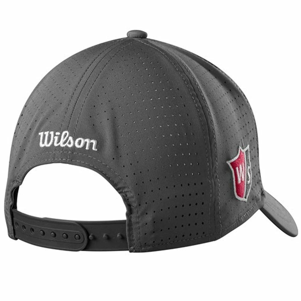The hat comes in one size but has an adjustable snapback closure which creates a comfortable fit for many. The look is completed with 3D Wilson branding across the front and a Wilson Staff logo at the side.
